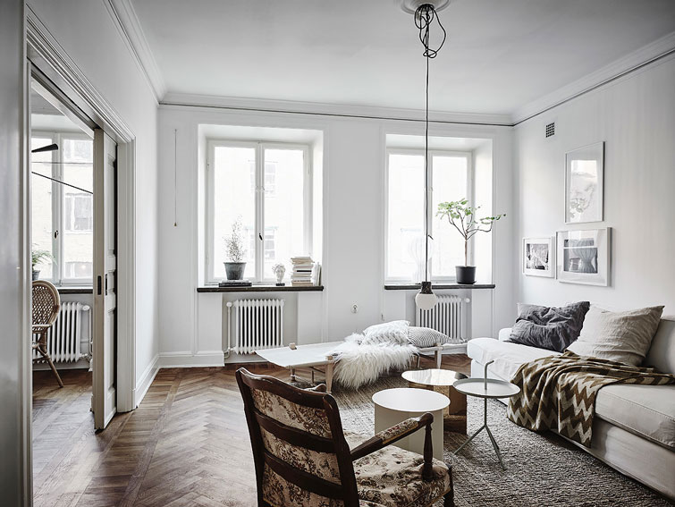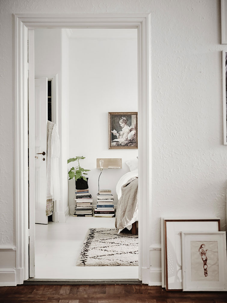 Así que en estos días de lluvia, he buscado casas bonitas con muchos cuadros en las paredes. Con composiciones de láminas, arte, diferentes materiales e ideas. Hoy os dejo este piso nórdico de 3 habitaciones, lleno de luz y de mucho espacio. Estancias donde el blanco es el protagonista, y los marcos de las paredes están por todas partes.